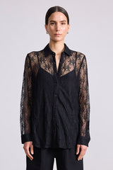 - Relaxed silhouette, fitted neckline with shirt collar and button front placket, high-low shirt tail hem