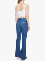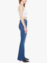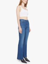 This cult-favorite flare jean has a mid rise, zip fly, 31-inch inseam and a clean hem. Made from stretch denim, Nip It In The Butt is a mid-blue with whiskering and fading at the knees.