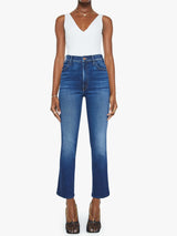 Roll the dice. This bestselling high-rise flare has an ankle-length inseam and a clean hem. Made from stretch denim, Taking Chances is a dark blue wash with whiskering and fading at the knees.