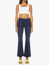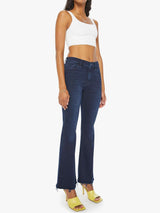 Brush it off. Our most popular mid-rise flare has a 31-inch inseam with a frayed hem. Cut from denim with a touch of stretch, Chip On My Shoulder is a dark blue wash with super subtle fading and whiskering.