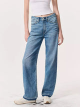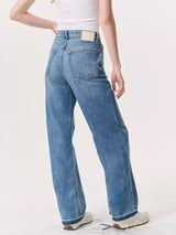 The Logan. The laid-back, mid-rise jeans with a roomy fit through the hip and thigh down to a released hem. (Pro tip: Take your natural size and wear low on your waist for a relaxed look, or size down for a higher rise.) Crafted from our Featherweight denim that's supremely soft and super light, with an easy drape. In Orian, a light indigo wash.
