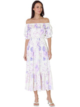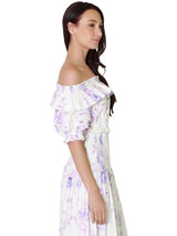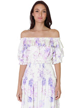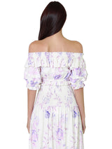 Effortlessly romantic, the Audrille Crop Top features a floral print on a lightweight linen fabric. This versatile piece can be worn on or off the shoulder for a day-to-night look and features elasticated sleeves with a slight puff effect. A smocked neck opening with elastic at the top and bottom opening creates the most flattering fit.