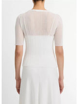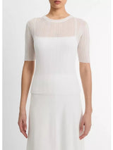 Soft and stretchy, this elbow-sleeve top is crafted from a fine, ribbed Italian cotton blend that boasts an airy, featherweight feel on the skin. The sheerness of the outer layer is contrasted with a removable opaque tank lining beneath.