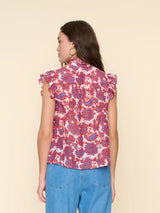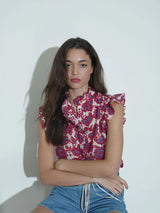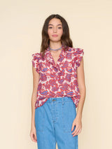 Picture Perfect. Brenna is new this season in our charming hand-sketched floral silk cotton voile print. Brenna combines all of our favorite elements from our bestselling Caspian and Bex tops with its ruffle details throughout the neck, front placket, and sleeves. This relaxed button-front top also features a band collar and ruched back yoke.