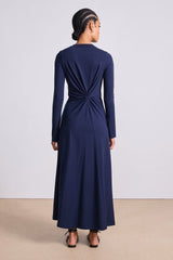 - Crew neckline, long sleeves, rib collar, twist details at front and back, midi length